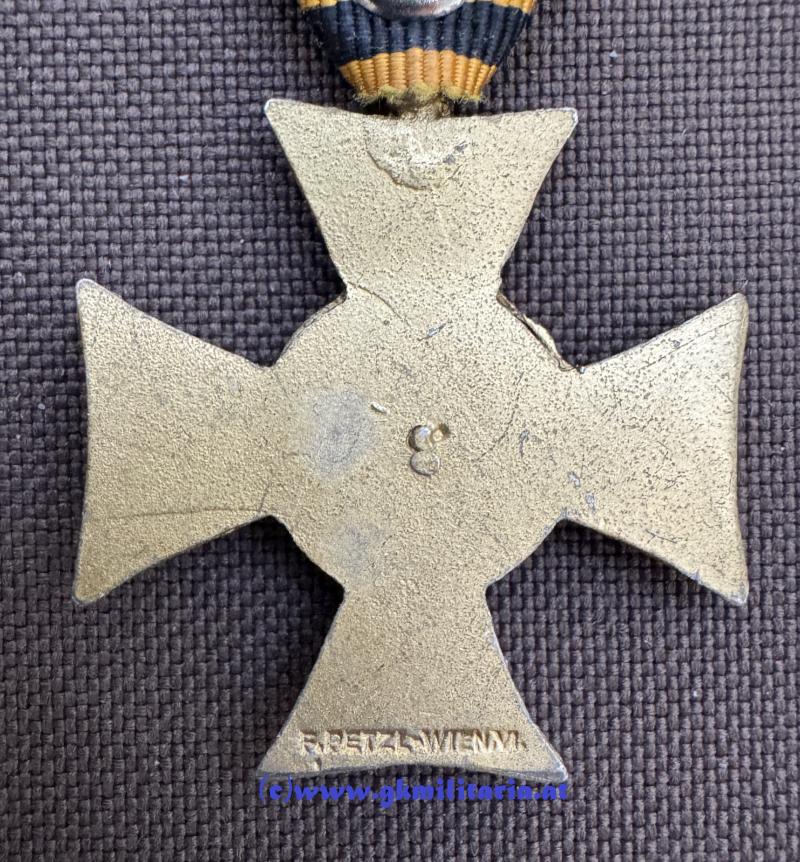 Militärdienstzeichen 12 Jahre - 1. Republik! - streichvergoldet - auf Rückseite Hersteller Petzl, Wien - am originalem Band - sehr guter Zustand!