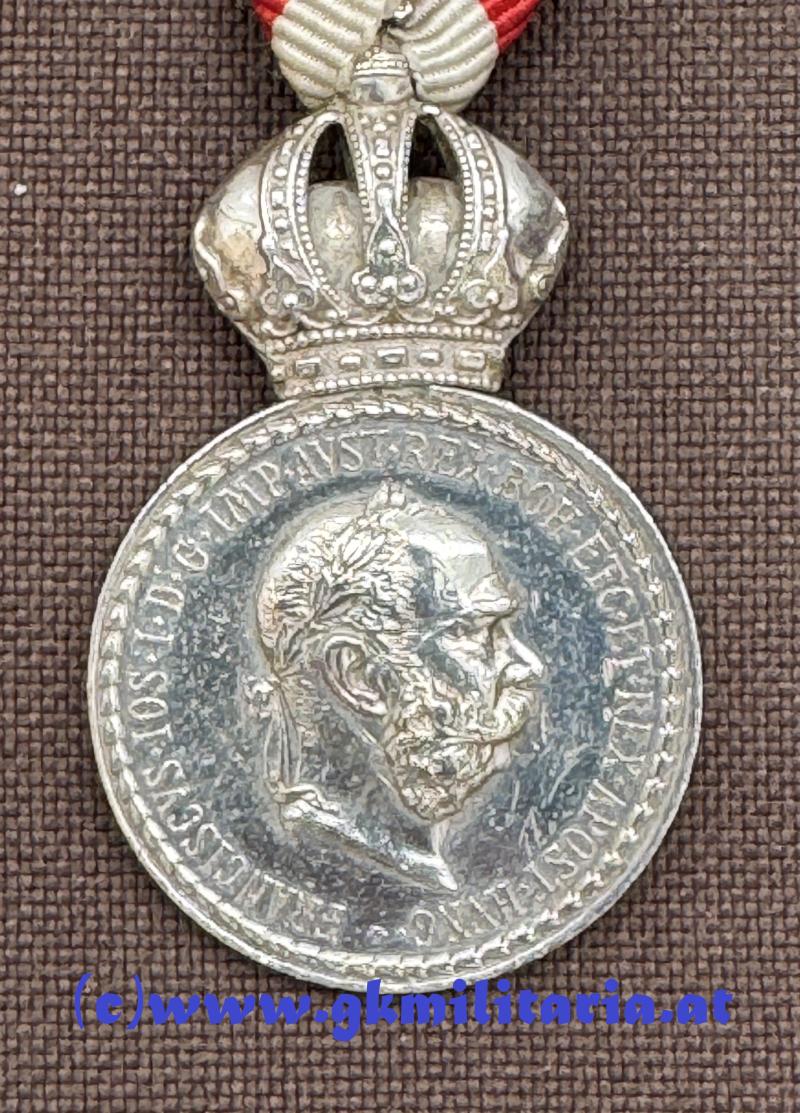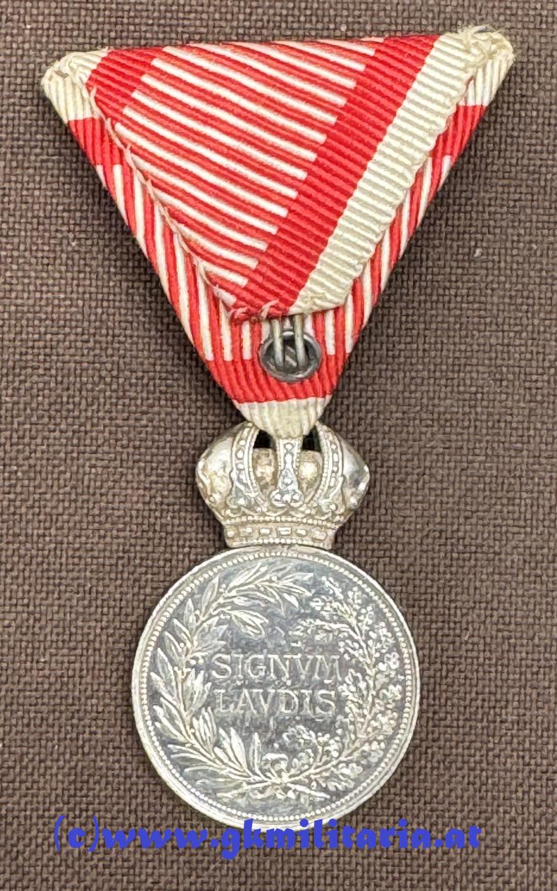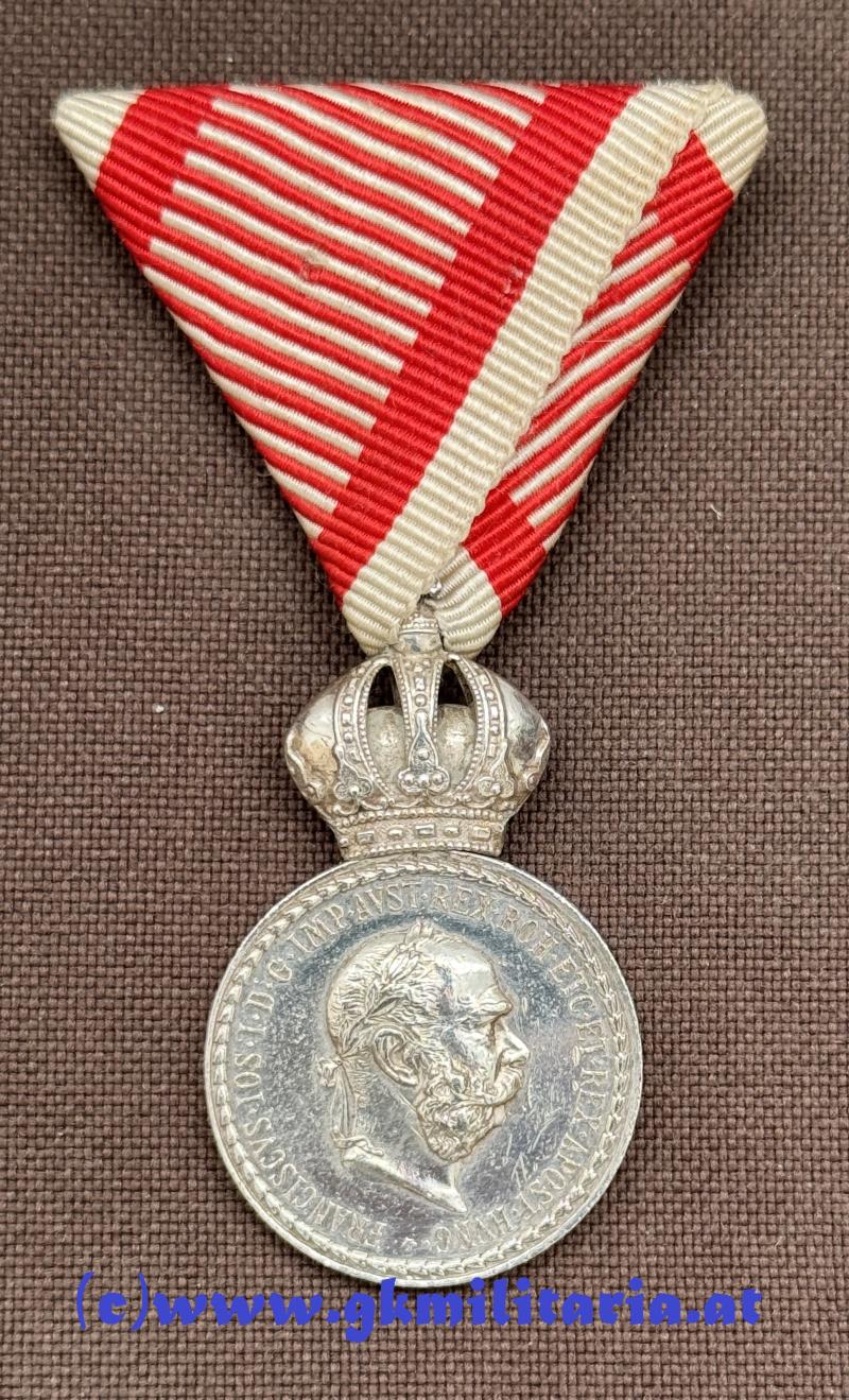 k.u.k. Silberne Militärverdienstmedaille Kaiser Franz Joseph I. - "SILBER" !! - Silber A punziert im Rand - am originalem Band - sehr guter Zustand!