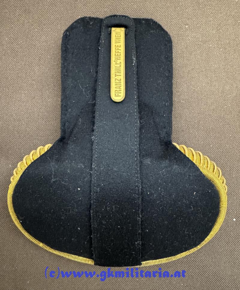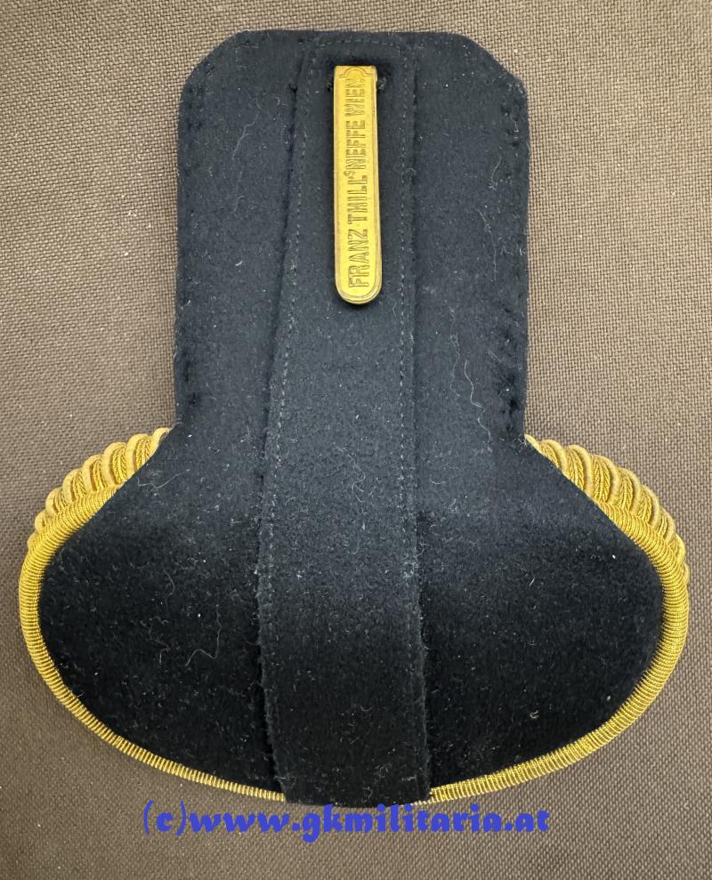 Paar Epauletten für Seefähnrich, Seekadetten oder Seeaspiranten der k. u. k. Kriegsmarine!! -Futter aus dunkelblauem Untertuch mit Haken zum Schlaufen - darauf der Hersteller Franz Thill´s Neffe Wien - Golddurchwirkte Halbmonde - die Felder aus Goldtresse mit aufgesticktem Anker und Kaiserkrone überhöht - an den Enden 15 mm-Knöpfe der k.u.k. Kriegsmarine - sehr guter getragener Zustand!