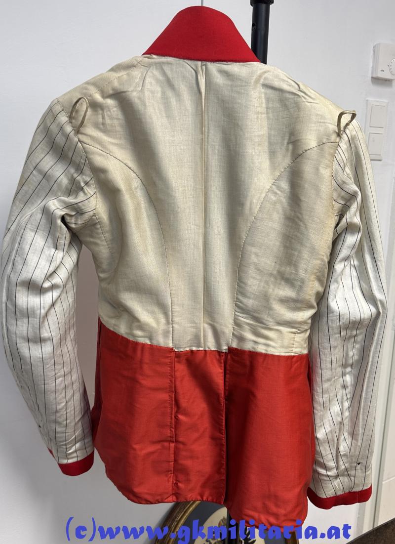 k.u.k. Rock Leutnant Artillerie Rudolf Kainz k.u.k. Feldartillerieregiment Nr. 36!! - Uniformrock für den Leutnant Rudolf Kainz der k.u.k. Artillerie - Feldartillerieregiment Nr. 36 - Träger der Silbernen und Bronzenen Militärverdienstmedaille beide mit Schwertern und Karl Truppenkreuz !! - dunkelbraunes feines Tuch mit Stehkragen - Ärmelaufschläge und Vorstöße aus scharlachrotem Tuch - am Kragen je 1 original vernähter goldener Stern für Offiziere - einreihig zu 6 goldenen Knöpfen mit Artillerie-Design - auf der linken Schulter goldene Achselschlinge - innen der Oberteil mit weißer und der Schoßteil mit roter Futterseide ausgelegt - Herstelleretikett W. Beck Wien k.u.k. Hoflieferant - in der Brusttasche original vernähtes Trägeretikett Richard Kainz im Schematismus 1918 unter Rudolf Kainz k.u.k. Feldartillerieregiment 36 ab 1918 vormals k.u.k. Feldkanonenregiment 36 - sehr guter, farbfrischer Zustand!