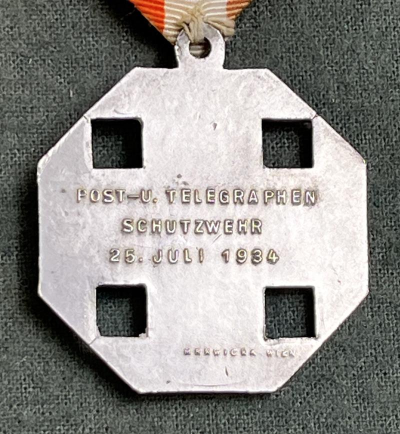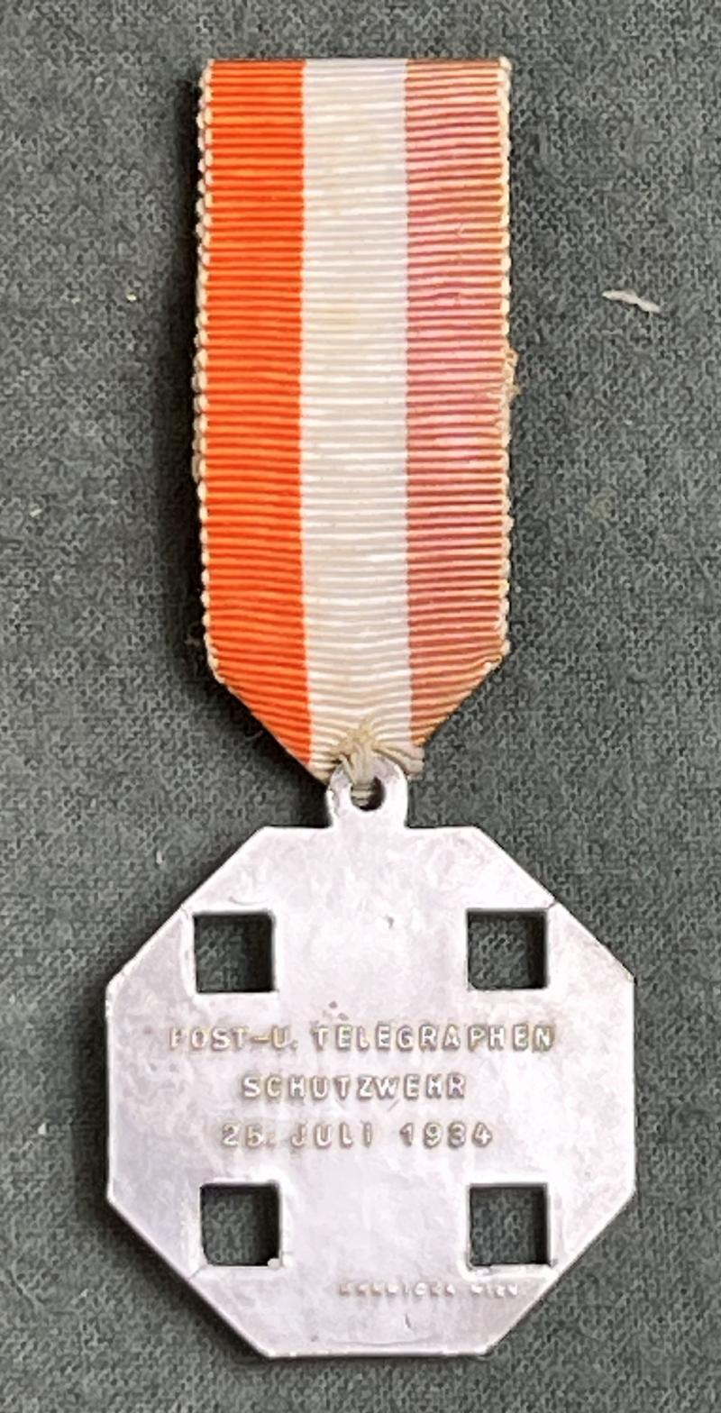 Ehrenzeichen der Post & Telegraphen-Schutzwehr 1934 - Heimwehr Bürgerkrieg Österreich 1934! - versilbert - am originalem Band - sehr guter Zustand!