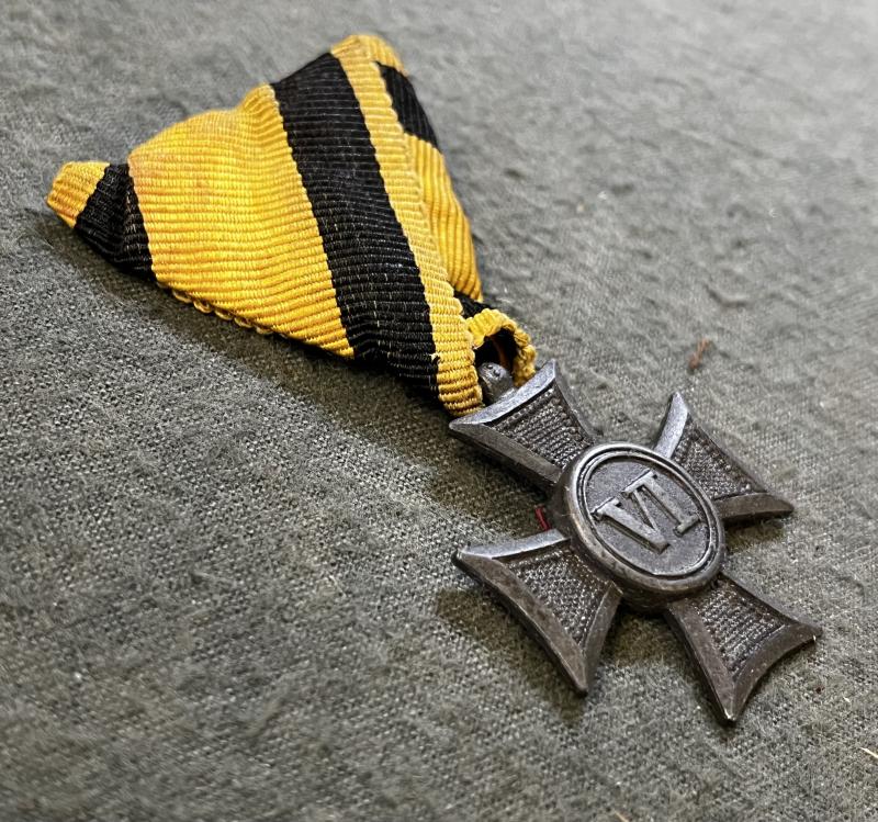 k.u.k. Militärdienstzeichen für VI Jahre für Mannschaften und Unteroffiziere - Kriegsmetall - am originalem leicht verschmutztem Band - guter gebrauchter Zustand!