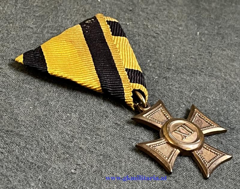 k.u.k. Militärdienstzeichen für XII Jahre für Mannschaften und Unteroffiziere - frühe Form 1867 - Tombak - am originalem frühen Band! - sehr guter Zustand!