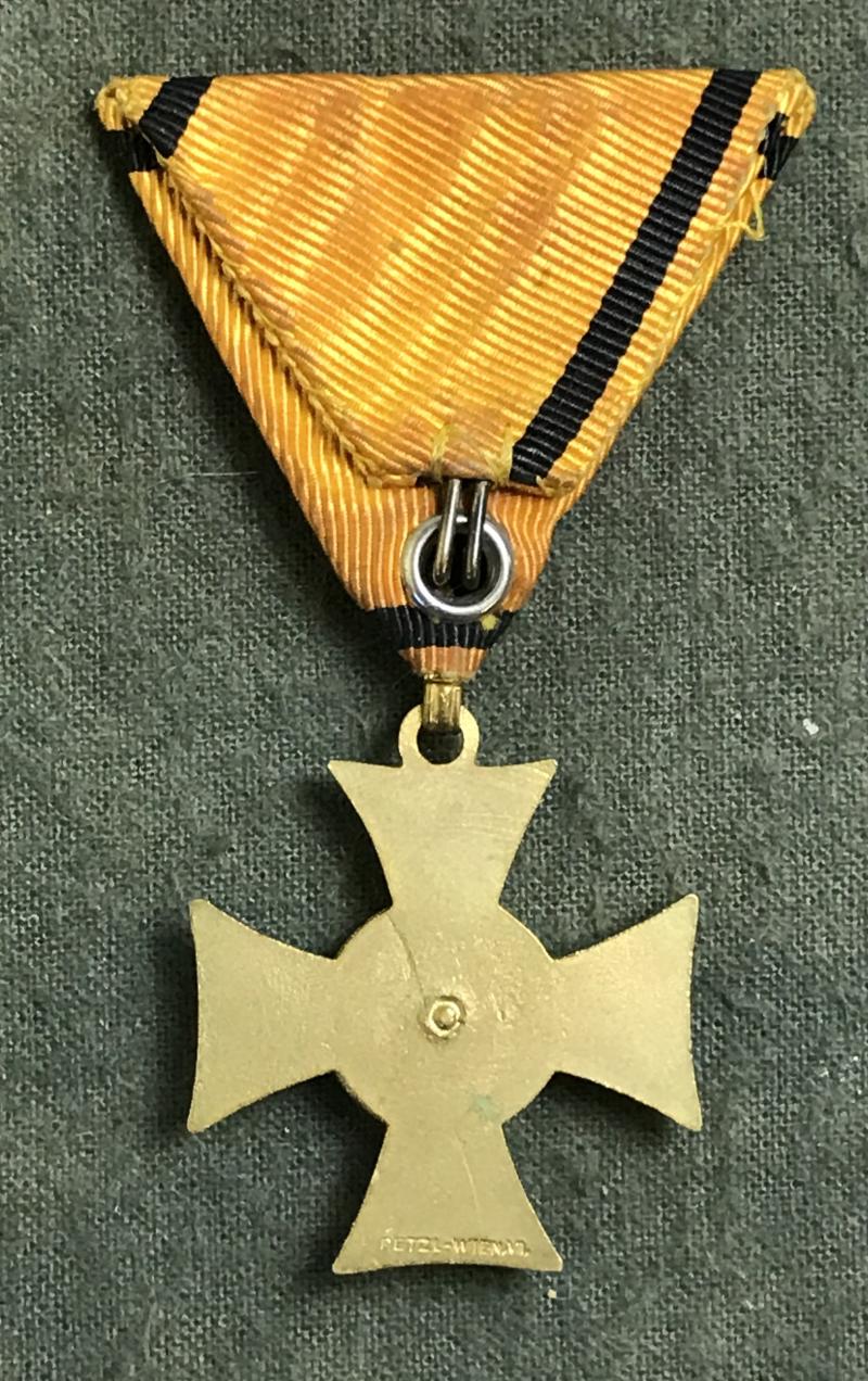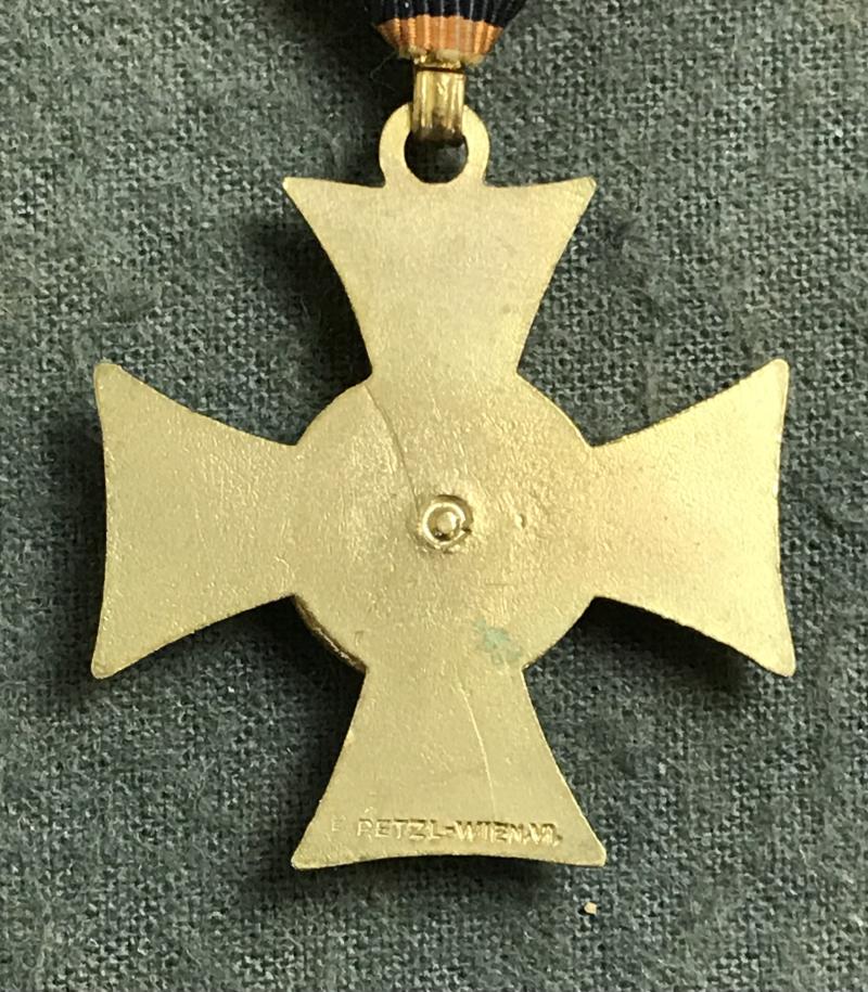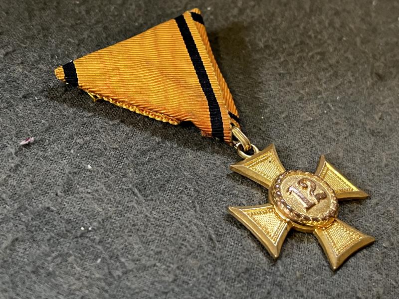 Militärdienstzeichen 12 Jahre - 1. Republik! - vergoldet - auf Rückseite Hersteller Petzl, Wien - am originalem Band - sehr guter Zustand!