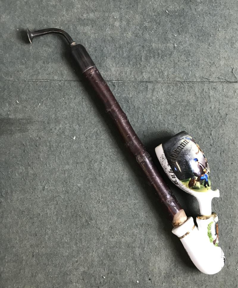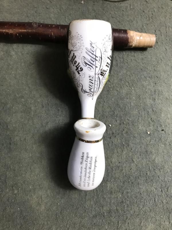 k.u.k. Reservistenpfeife Feldkanonen-Regiment Nr.42 !! - 1905 - für Franz Pfeffer Oberkanonier 4. Batterie - 1.Zug - komplett mit Wassersack und Pfeifenstiel - ca. 31cm lang - sehr guter Zustand!