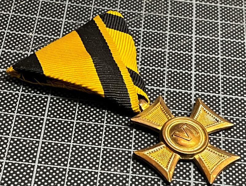 k.u.k. Militärdienstzeichen für VI Jahre für Mannschaften und Unteroffiziere - Bronze vergoldet - am originalem Band - sehr guter Zustand!