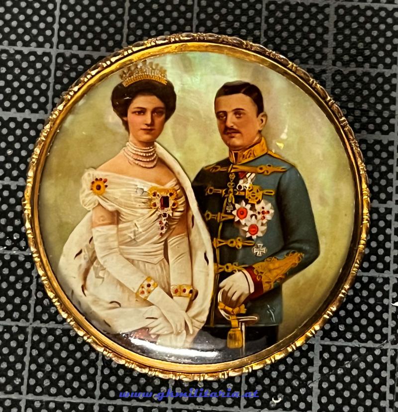 k.u.k. Patriotisches Prachtabzeichen - Kaiser Karl I. + Kaiserin Zita - "Perlmutt!"
