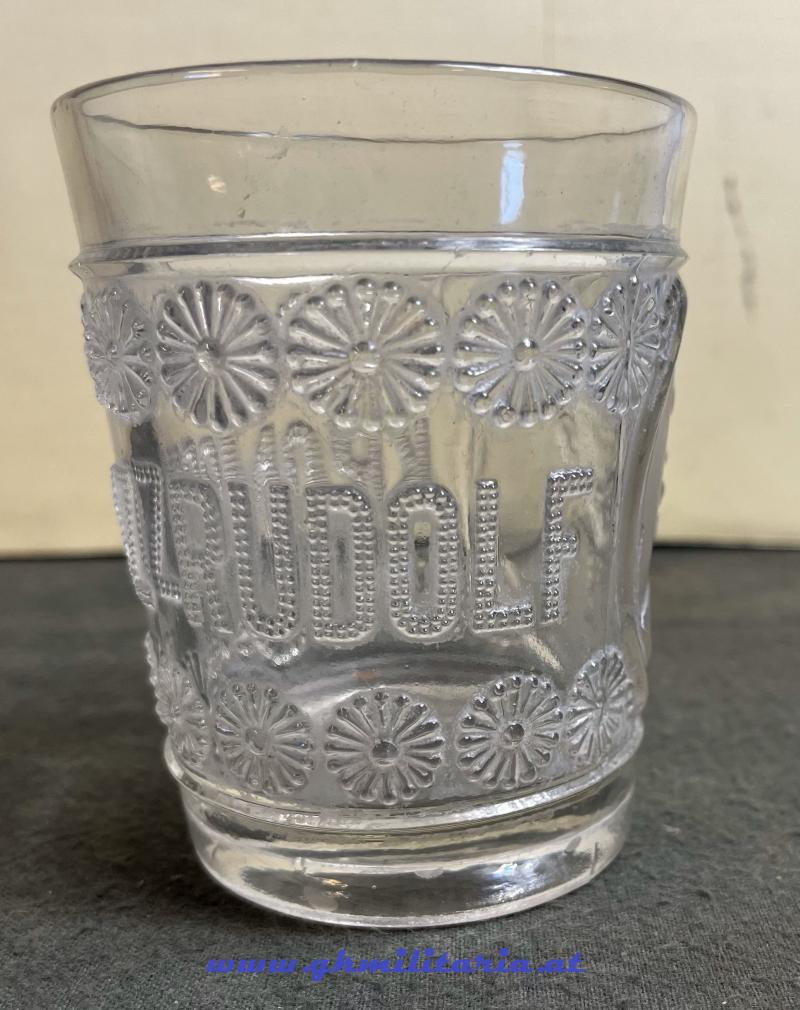 k.u.k. Glas von Kronprinz Erzherzog Rudolf! - Pressglas - um 1880 - ca. 10cm hoch und 8cm Durchmesser - sehr guter Zustand!