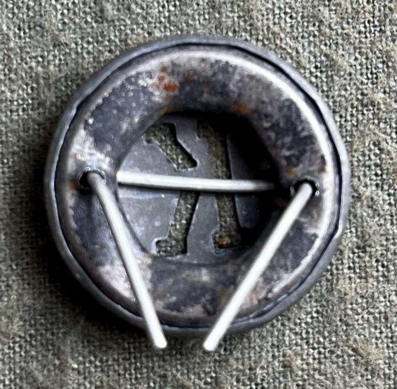 k.u.k. Mützen-Kokarde Kaiser Karl ! - feldgrau lackiert - mit 2 originalen Splinten - stammt aus größeren Hortfund - 1 Stück noch vorrätig - sehr guter Zustand!