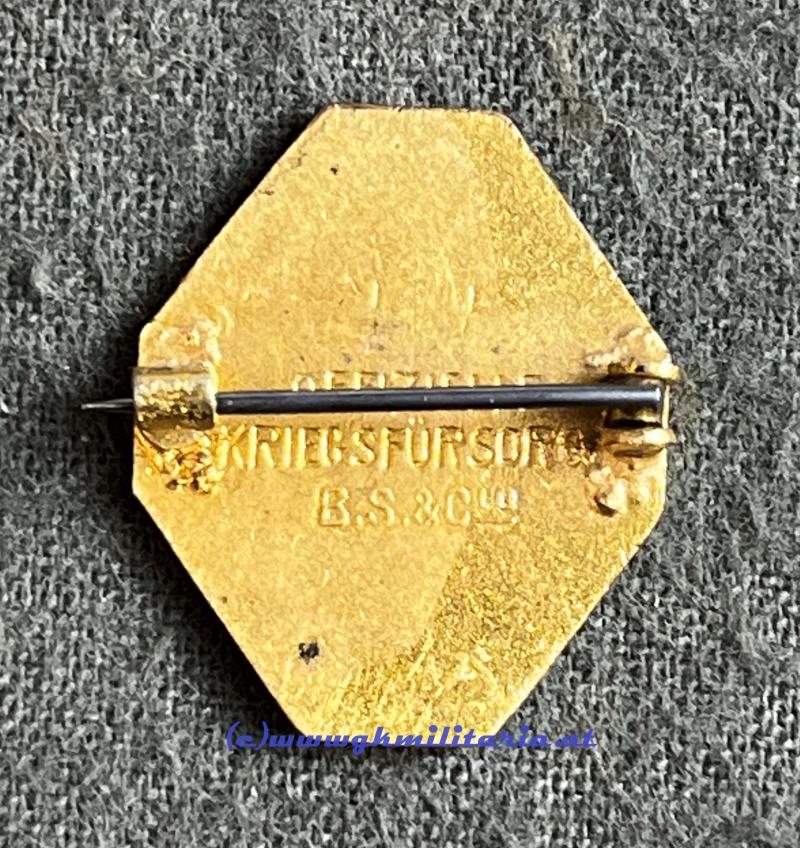 Patriotisches Abzeichen - Viererbund - mit osmanischem Reich Türkei! - auf RS Offizielle Kriegsfürsorge und Meisterpunze B.S. & Cie - vergoldet und emailliert - originales Nadelsystem - sehr guter Zustand!