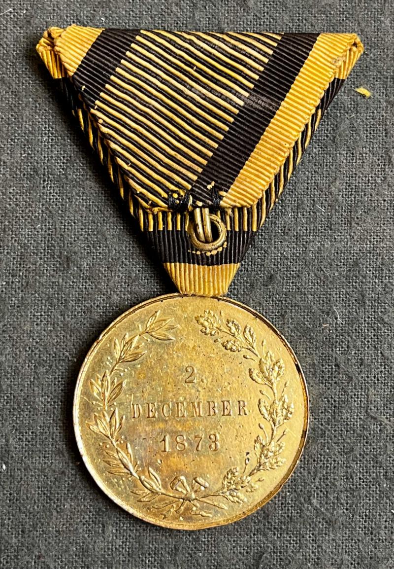 k.u.k. Kriegsmedaille 2. December 1873 - dicke Variante 3,5mm dick - aus Geschützbronze - am originalem Band! - sehr guter Zustand