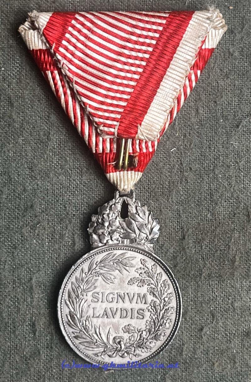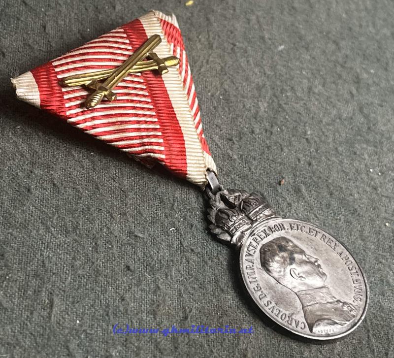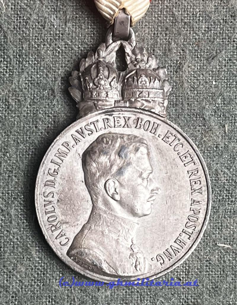 k.u.k. Silberne Militärverdienstmedaille Kaiser Karl I. - Silber! - Silber punziert "A" Punze am Rand - am originalem Band mit Schwertern - sehr guter Zustand!